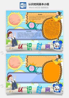 儿童卡通可爱珍惜时间手抄报Word模板,