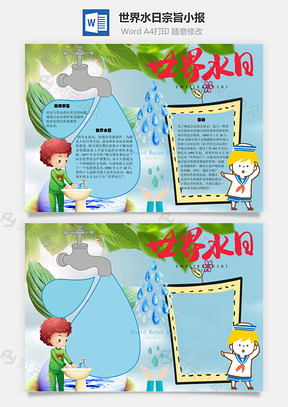 世界水日宗旨手抄报Word模板,