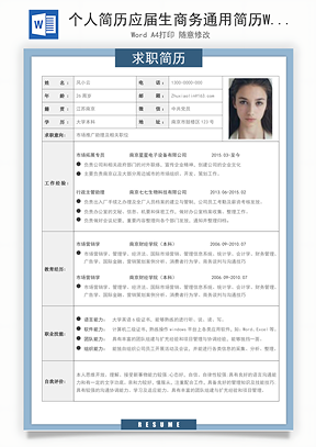 机械简历个性简历热门简历最新简历商务通用简历Word模板