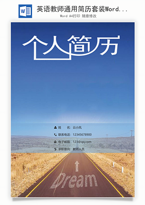 教师简历清新风简历套装求职简历教师简历套装Word模板,