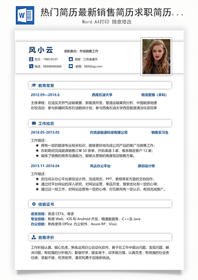 风云办公提供销售简历简历套装求职简历销售简历最新简历Word模板下载,格式为 docx,一共3页,作品中文字及图均可以修改和编辑,图片更改请在作品中右键图片并更换,文字修改请直接点击文字进行修改。更多精彩其它简历Word模板,尽在风云办公。