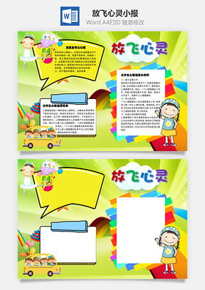 可爱卡通放飞心灵健康成长手抄报Word模板,