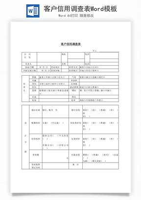 销售管理客户资料顾客营业信用管理卡Word模板,
