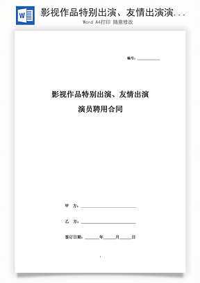 影视作品特别出演、友情出演演员聘用合同协议书范本Word模板,