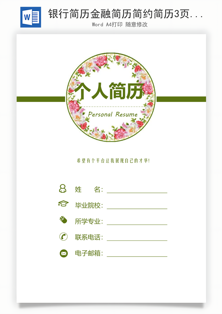 银行简历金融简历简约简历3页简历Word模板推荐