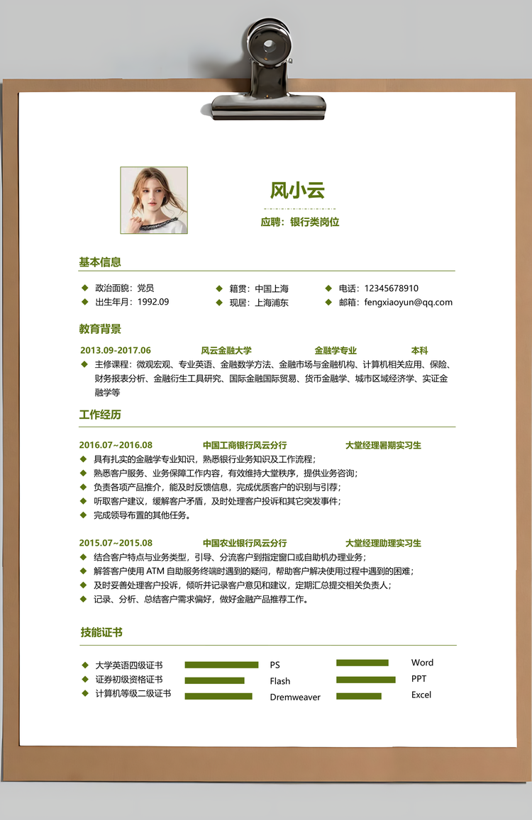 简历求职银行金融